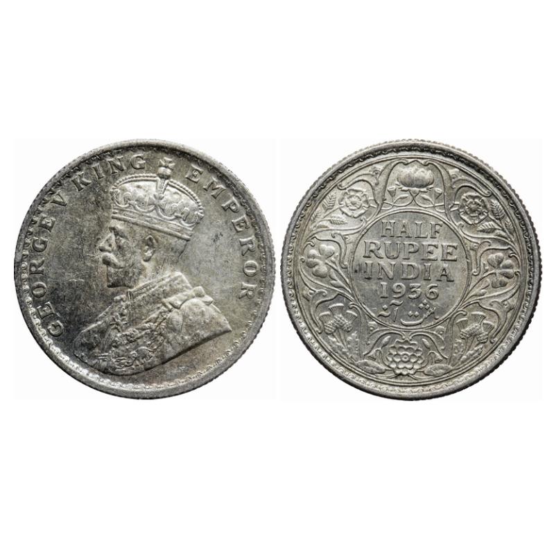 George V, Silver, Half Rupee, 1936, Calcutta Mint, No dot. GK 1075. Uncirculated. Scarce.