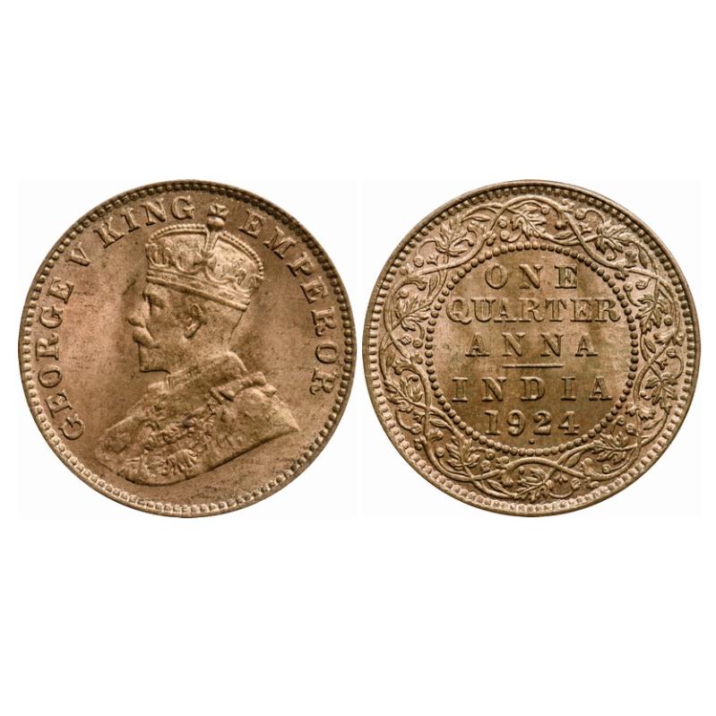 George V, Bronze, Quarter Anna, 1924, Bombay Mint, Dot. GK 1180. Uncirculated. Scarce.