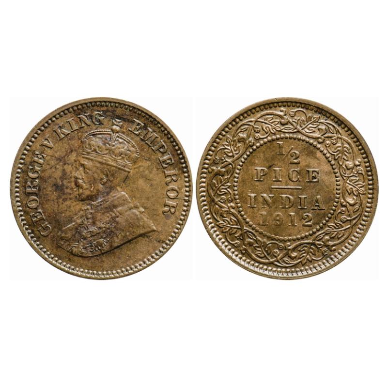 George V, Bronze, 1/2 Pice, 1912, Calcutta Mint, No mint mark. GK 1198. Uncirculated. Very Scarce....