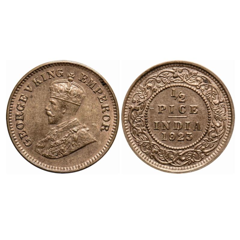 George V, Bronze, 1/2 Pice, 1923, Calcutta Mint, No mint mark. GK 1209. Uncirculated. Rare.