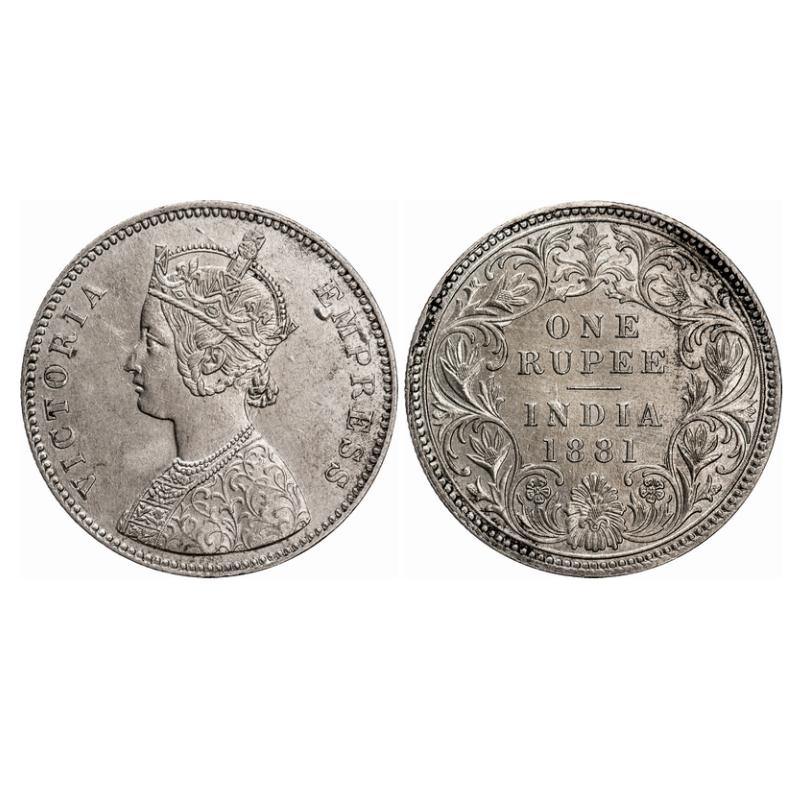 Victoria Empress, Silver, Rupee, 1881, Calcutta Mint, A1/I, 'C' incused. GK 471. Extremely Fine. Very Scarce.