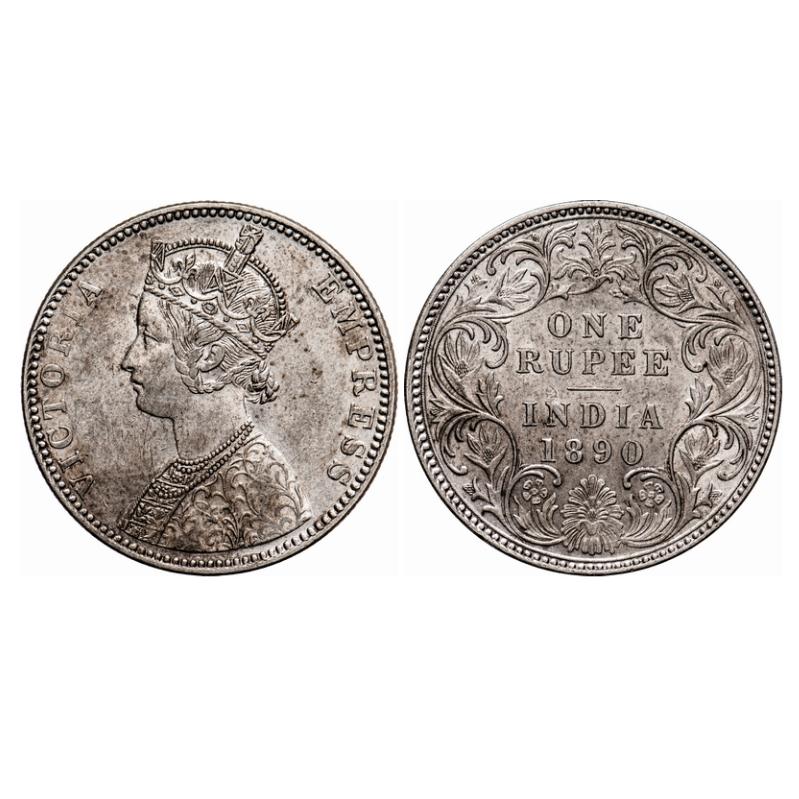 Victoria Empress, Silver, Rupee, 1890, C2/I, 'B' incused, Ghost on Rev. GK 566. Almost Uncirculated. Scarce.
