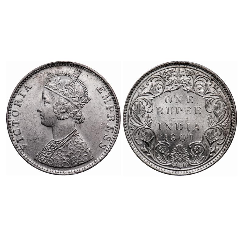 Victoria Empress, Silver, Rupee, 1901, Bombay Mint, 'B' incused, With original mint luster. GK 593. Uncirculated. Scarce.