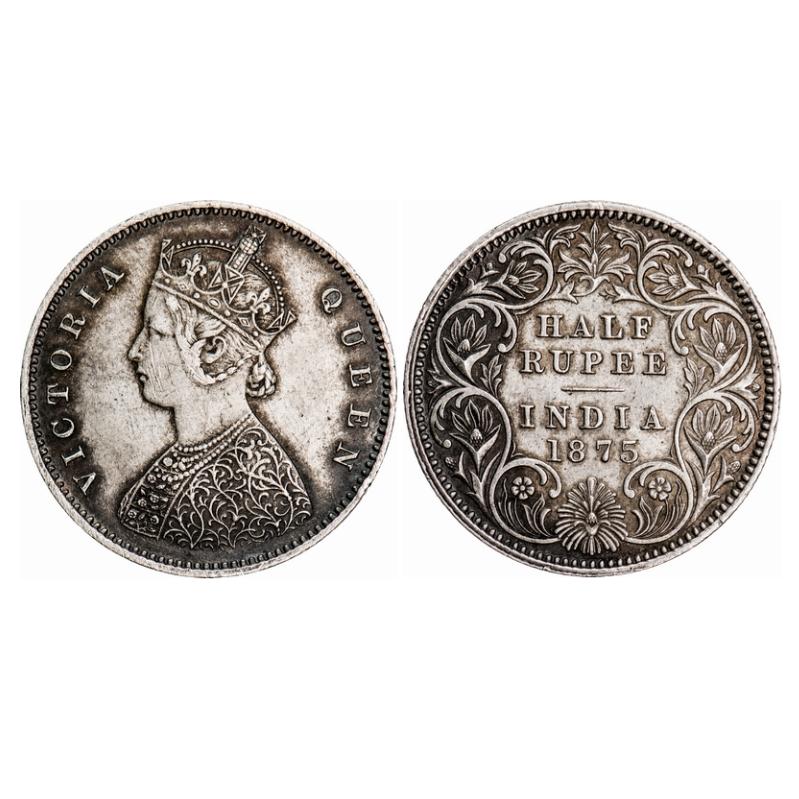 Victoria Empress, Silver, Half Rupee, 1875, Calcutta Mint, A/I, No mint mark. GK 604. Almost Extremely Fine. Scarce.