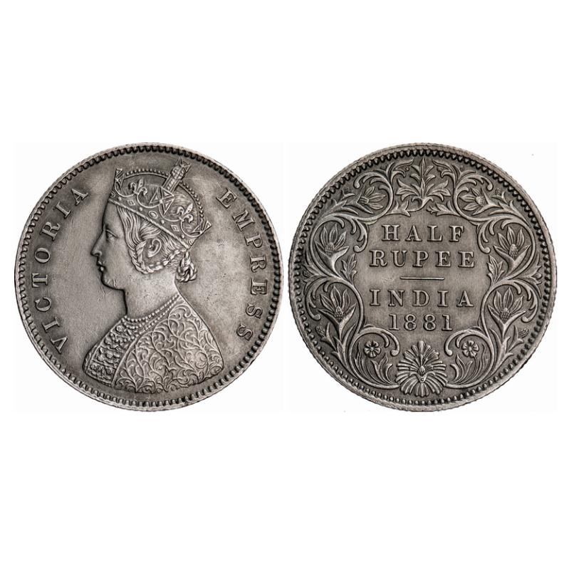 Victoria Empress, Silver, Half Rupee, 1881, Calcutta Mint, A/I, 'C' incused. GK 617. About Extremel...