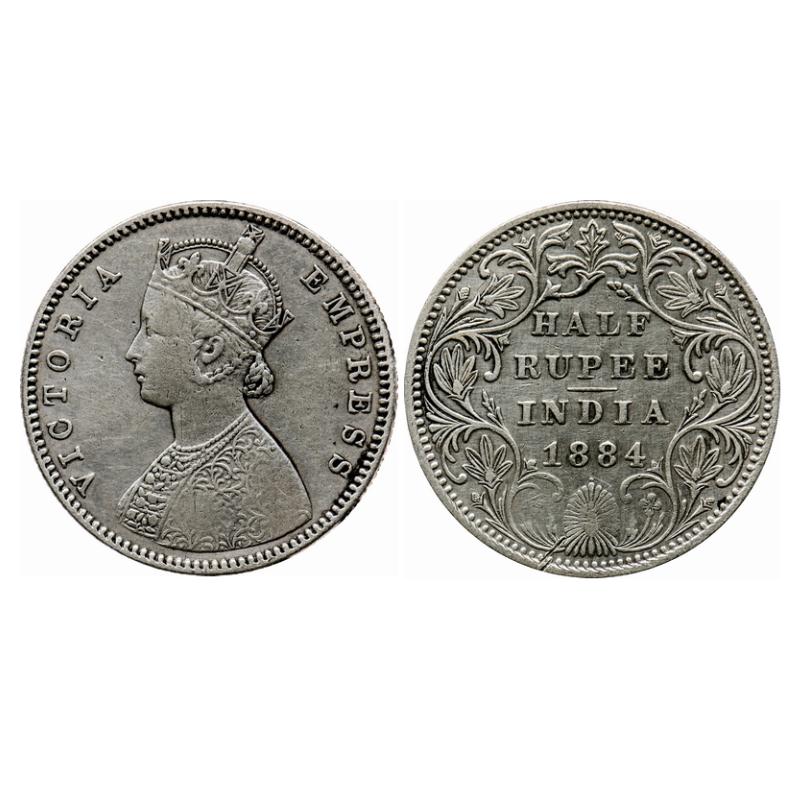 Victoria Empress, Silver, Half Rupee, 1884, Bombay Mint, A/II, Dot. GK 625. Very Fine, Cleaned. Very Scarce.