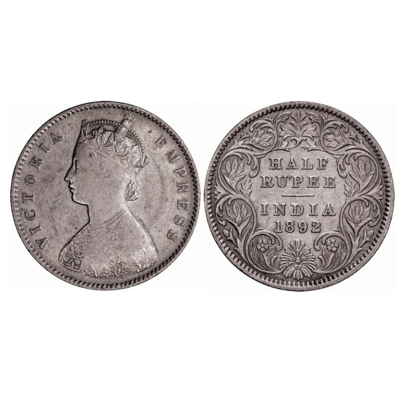 Victoria Empress, Silver, Half Rupee, 1892, Calcutta Mint, A/I, 'C' incused. GK 647. About Very Fine. Scarce.