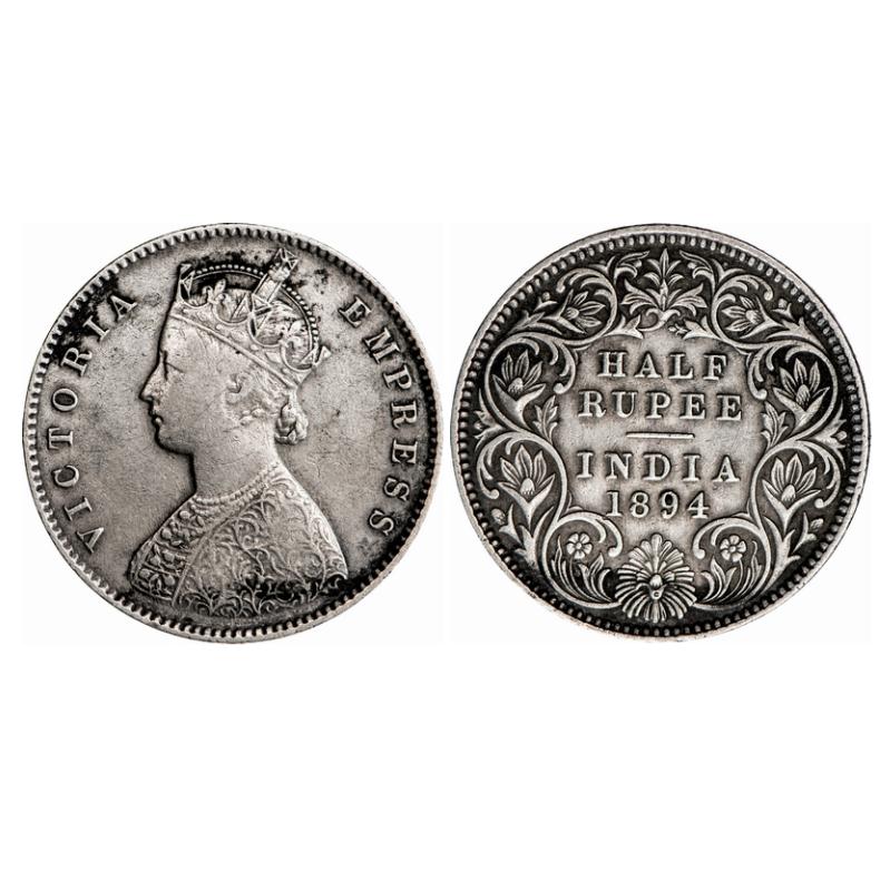 Victoria Empress, Silver, Half Rupee, 1894, Calcutta Mint, A/I, 'C' incused. GK 651. Very Fine, Cleaned. Scarce.