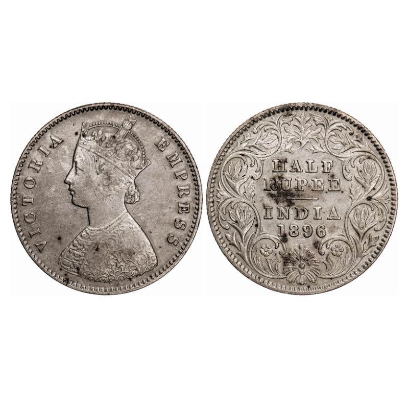 Victoria Empress, Silver, Half Rupee, 1896, Calcutta Mint, A/I, 'C' incused. GK 652. About Very Fine, Details. Scarce.