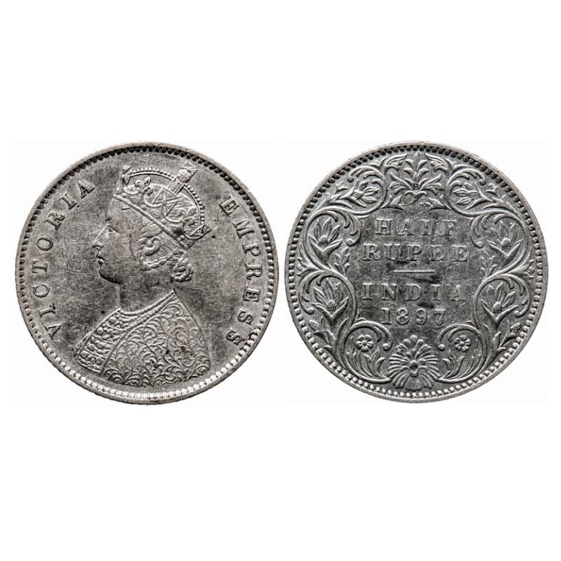 Victoria Empress, Silver, Half Rupee, 1897, Bombay Mint, A/I, 'B' incused. GK 655. Extremely Fine. Very Scarce.