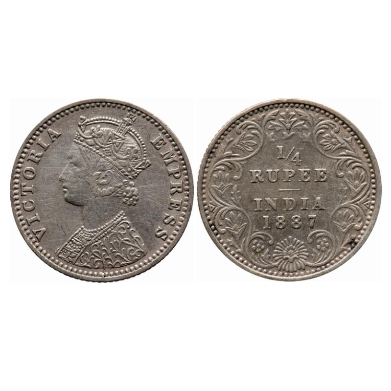 Victoria Empress, Silver, 1/4 Rupee, 1887, Bombay Mint, C(i)/II, 'B' raised, Multiple die cracks on Obv. GK 708. Extremely Fine. Scarce.