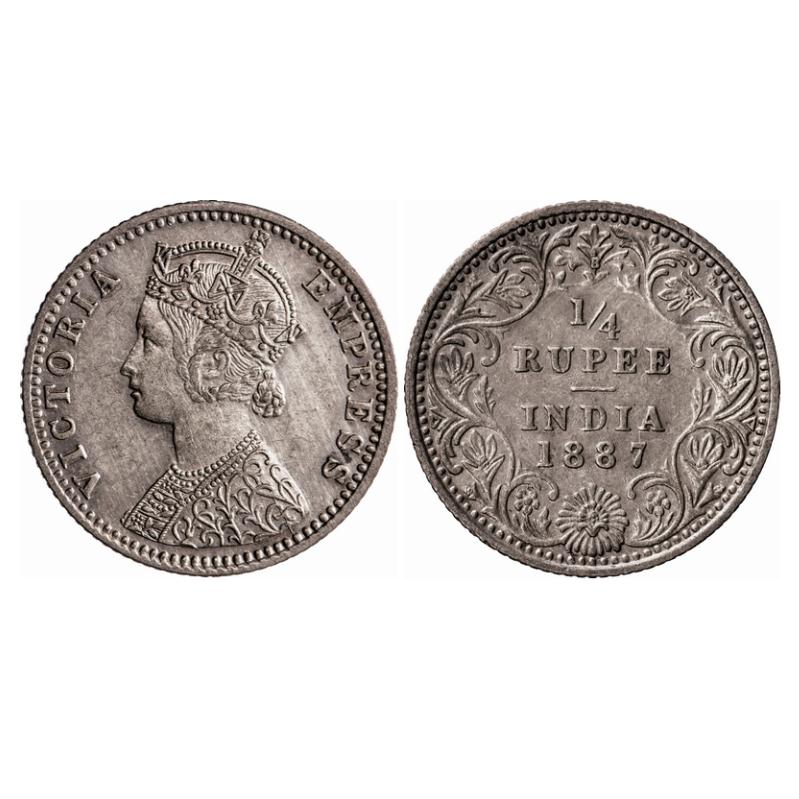 Victoria Empress, Silver, 1/4 Rupee, 1887, Bombay Mint, C(i)/II, 'B' raised. GK 708. Extremely Fine+. Scarce.