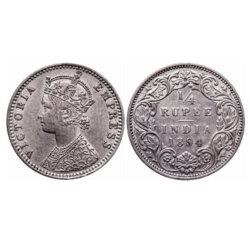 Victoria Empress, Silver, 1/4 Rupee, 1894, Calcutta Mint, C/II, 'C' incused. GK 727. Very Fine, Cle...