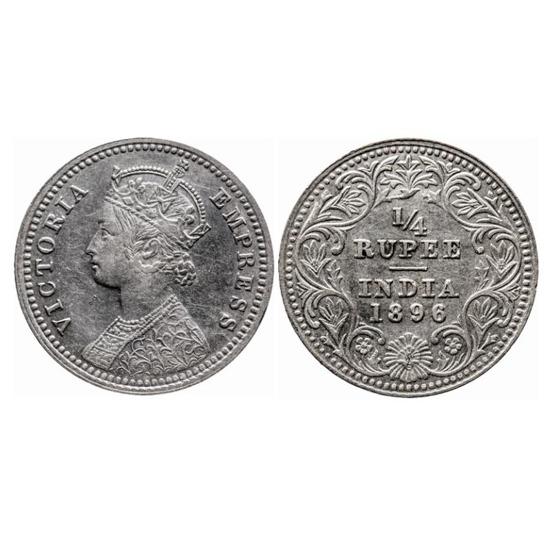 Victoria Empress, Silver, 1/4 Rupee, 1896, Calcutta Mint, C/II, 'C' incused. GK 728. Extremely Fine+. Scarce.