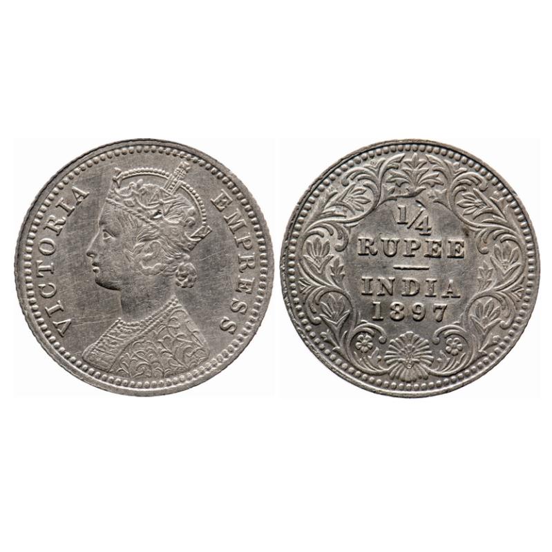Victoria Empress, Silver, 1/4 Rupee, 1897, Calcutta Mint, C/II, 'C' incused. GK 732. Extremely Fine+. Scarce.
