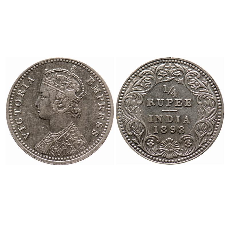 Victoria Empress, Silver, 1/4 Rupee, 1898, Calcutta Mint, C/II, 'C' incused. GK 735. Extremely Fine+. Very Scarce.