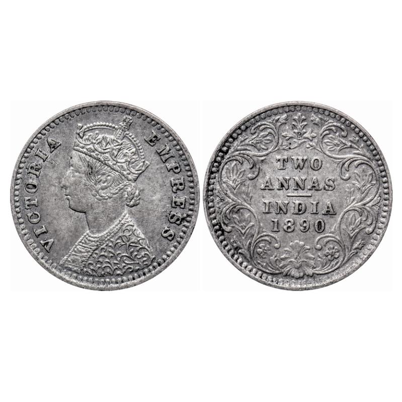 Victoria Empress, Silver, 2 Annas, 1890, Bombay Mint, B/II, 'B' incused. GK 792. Extremely Fine. Scarce.