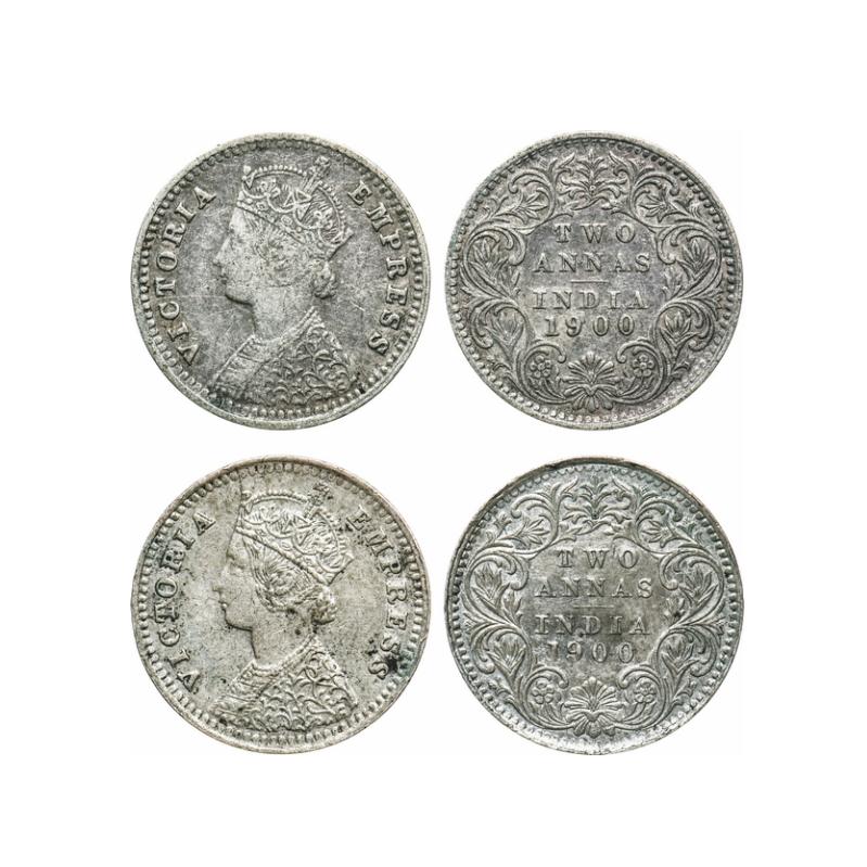 Victoria Empress, Silver, 2 Annas (2 Coins), 1900, Bombay Mint, B/I, 'B' raised. GK 812. Very Fine to Very Fine+. Scarce.