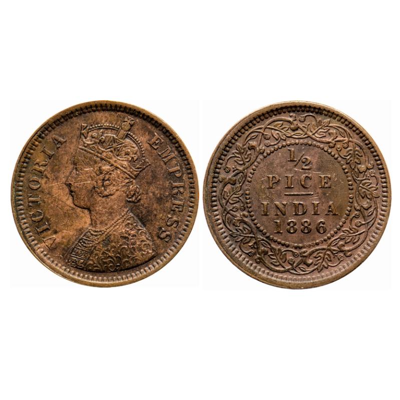 Victoria Empress, Copper, 1/2 Pice, 1886, Calcutta Mint, A/I. GK 865. Very Fine+. Scarce.