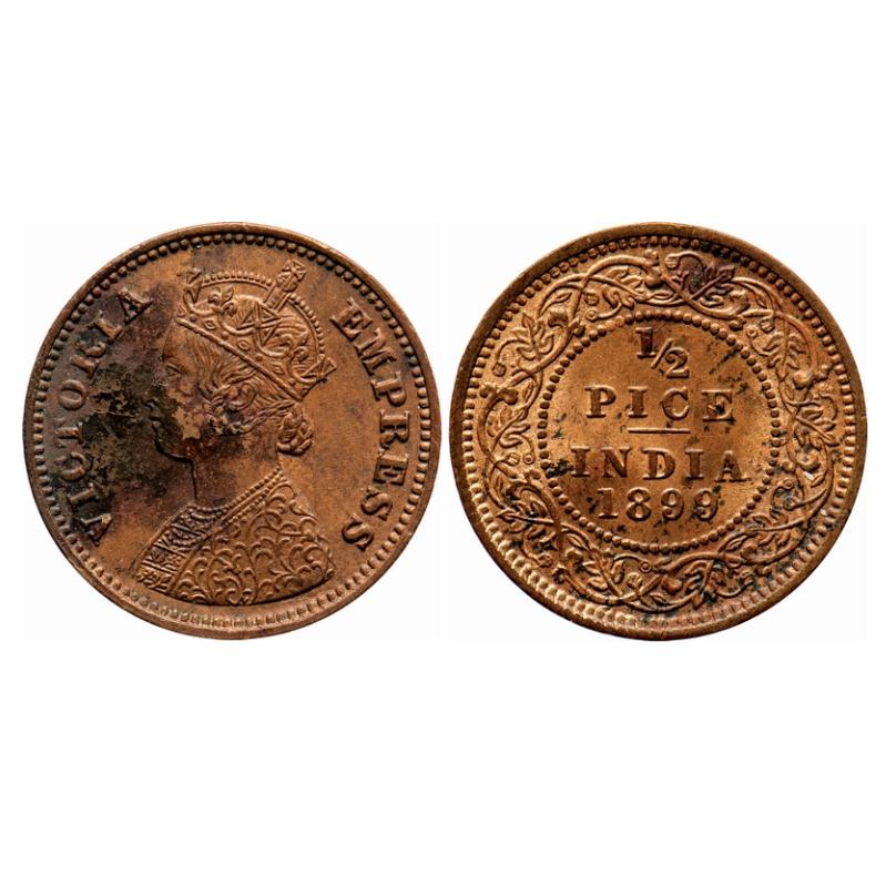 Victoria Empress, Copper, 1/2 Pice, 1899, Calcutta Mint, A/I, No Mint mark. GK 879. Uncirculated, Details. Very Scarce.