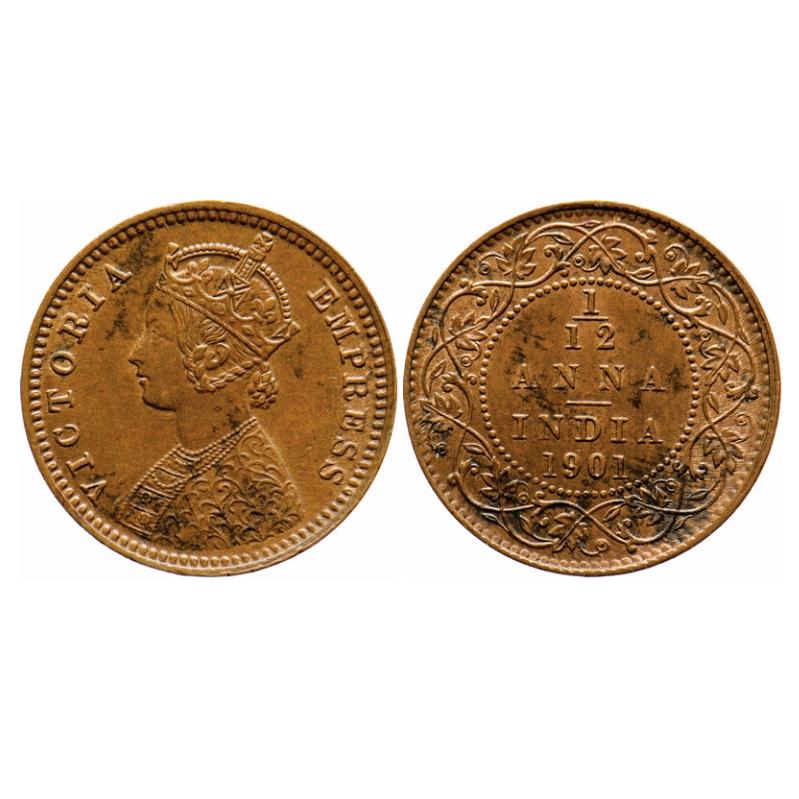 Victoria Empress, Copper, 1/12 Anna, 1901, Calcutta Mint, Obv B, No mint mark, 1 o'clock on Rev, Di...