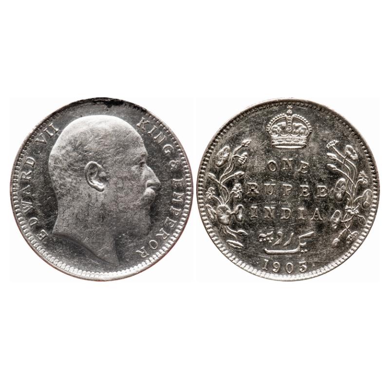 Edward VII, Silver, Rupee, 1905, Bombay Mint, 'B' incused and dot, Top stroke of numeral 5 long, Clipped edge. GK 936. NGS Slabbed AMS, Details. Scarce. |