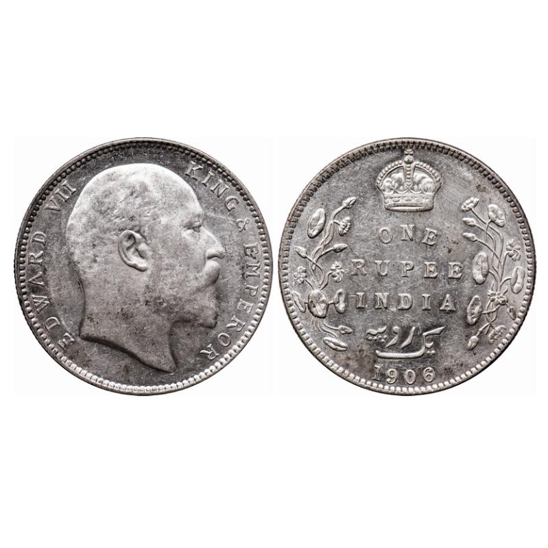 Edward VII, Silver, Rupee, 1906, Bombay Mint, 'B' incused, Dot, With original mint luster. GK 940. About Uncirculated, Details. Scarce. |