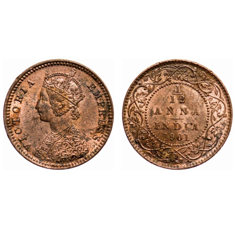 Victoria Empress, Copper, 1/12 Anna, 1901, Calcutta Mint, Obv 'B', No mint mark. F. Prid # 805. GK 921. About Uncirculated, Details. Scarce.