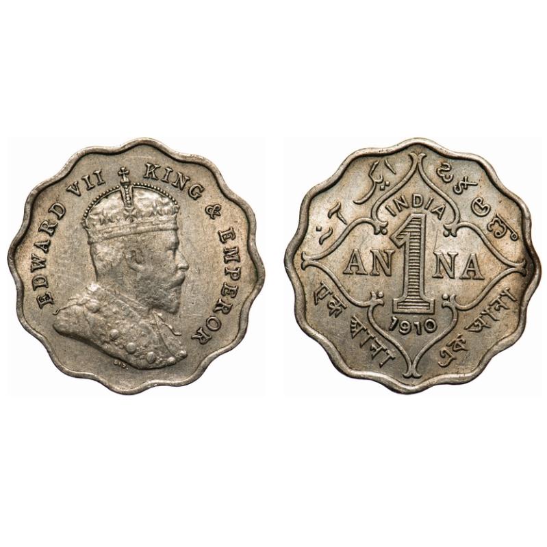 Edward VII, Copper-Nickel, 1 Anna, 1910, Bombay Mint, 'B' incused, Scalloped round. F. Prid # 929. GK 993. Extremely Fine+. Scarce.