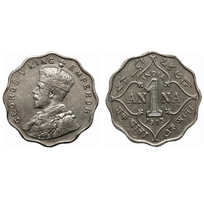 George V, Copper-Nickel, 1 Anna, 1913, Bombay Mint, No dot, Partial ghost on Rev. F. Prid # 943. GK 1143. Extremely Fine. Scarce.
