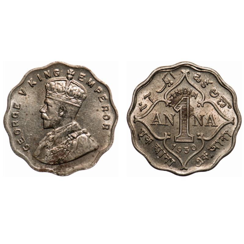 George V, Copper-Nickel, 1 Anna, 1930, Calcutta Mint, No dot. F. Prid # 936. GK 1163. Uncirculated. Very Scarce.