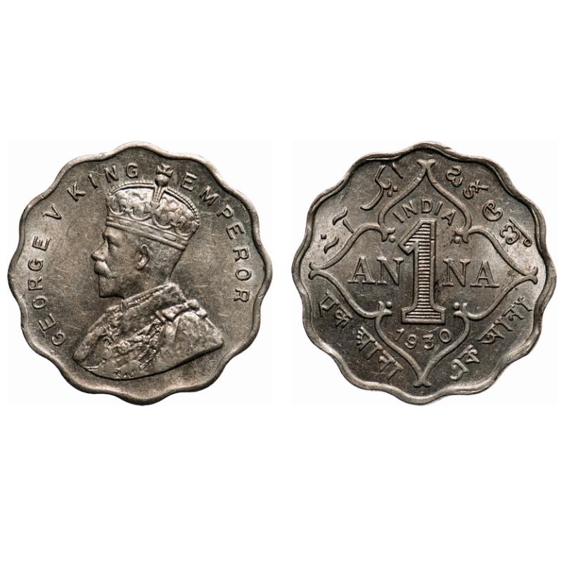 George V, Copper-Nickel, 1 Anna, 1930, Calcutta Mint, No dot. F. Prid # 936. GK 1163. Uncirculated with original mint luster. Very Scarce.
