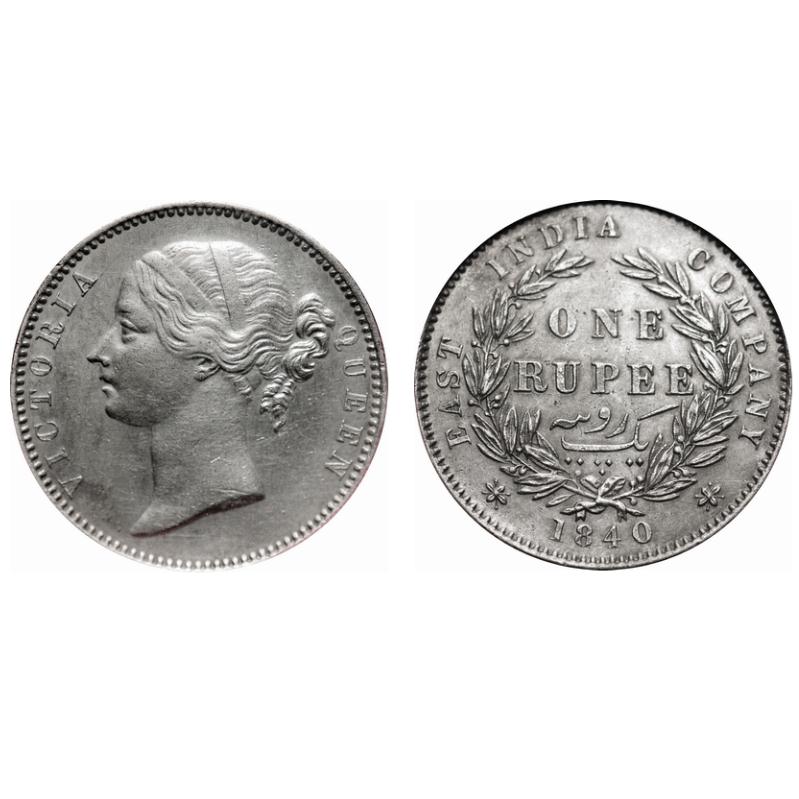 | Victoria Queen, Silver, Rupee, 1840, DL, Madras Mint, W.W., 'S' raised, 28 Berries (13L + 15R). F. Prid # 59. GK 177. NGS Slabbed XF 40+. Very Scarce. |