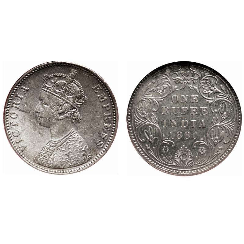 Victoria Empress, Silver, Rupee, 1880, Bombay Mint, A3/II(iv), Dot. F. Prid # Unlisted. GK 467. NGS Slabbed XF Details, Cleaned. Scarce.