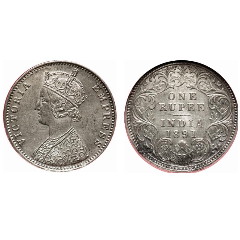 Victoria Empress, Silver, Rupee, 1891, Calcutta Mint, C3/I(i), 'C' incused. F. Prid # 132. GK 570. NGS Slabbed AMS 58 Details. Scarce.