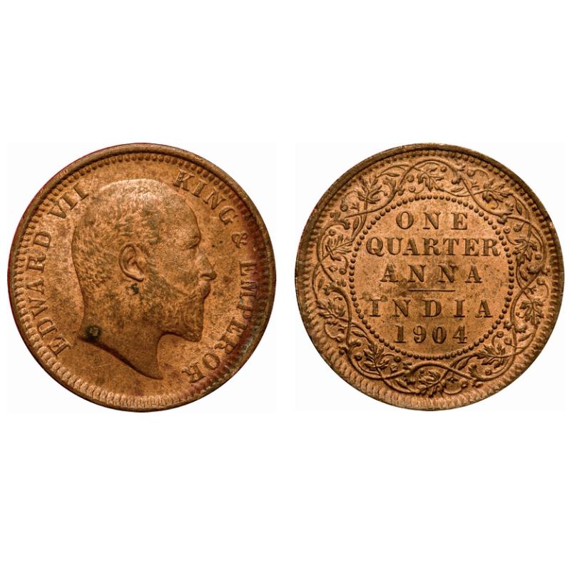 Edward VII, Copper, Quarter Anna, 1904, Calcutta Mint, No mint mark. F. Prid # 647. GK 995. NGC Slabbed MS 62. Rare.