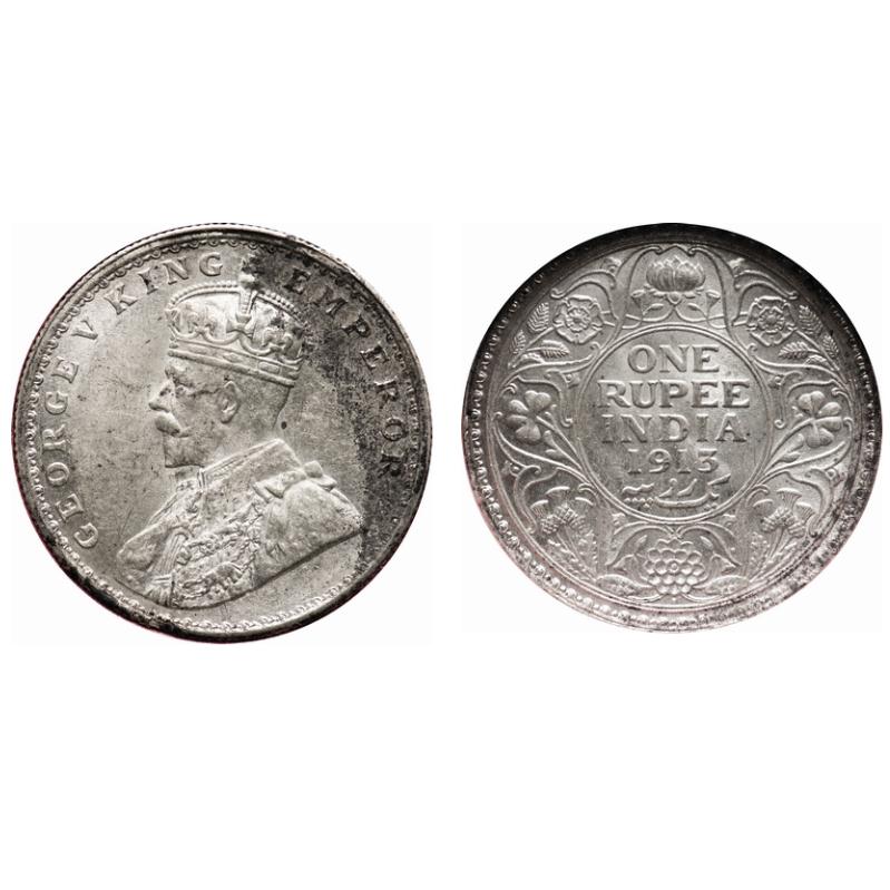 George V, Silver, Rupee, 1913, Bombay Mint, Dot. F. Prid # 219. GK 1028. NGC Slabbed MS 62. Rare....