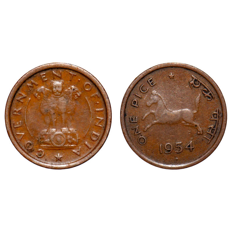 1 Pice, 1954, Bronze, Hyderabad Mint, split daimond, Very Fine+, Scarce.