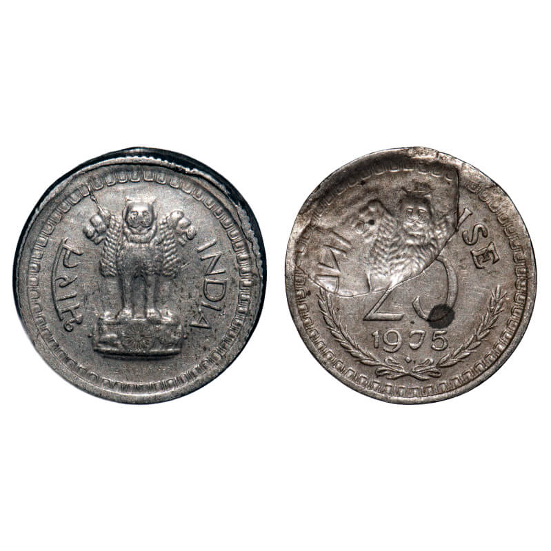 25 Paisa, 1975, Cu-Ni, 2.57g, Bombay Mint, Indent error on reverse. Very Fine+, Scarce.