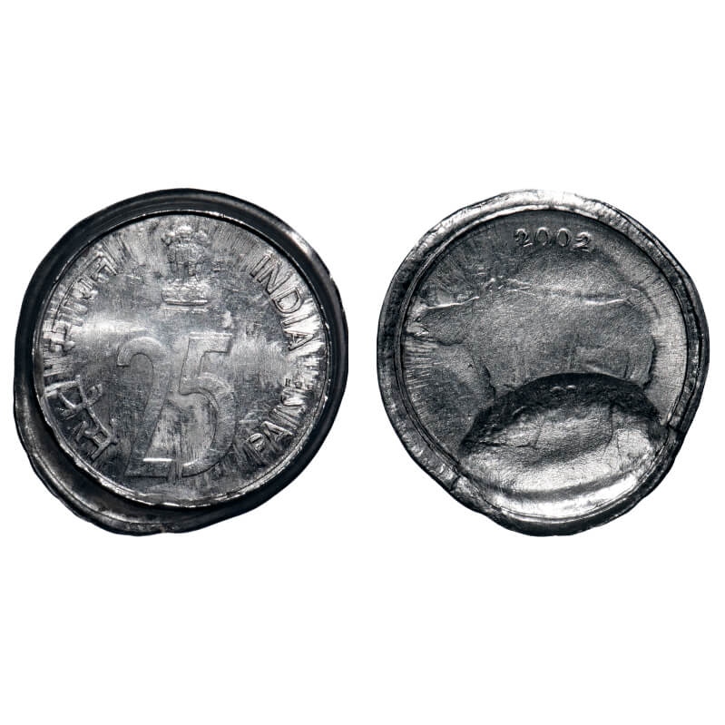 25 Paisa, 2002, FSS, 2.85g, Indent and broad struck error. Uncirculated, Scarce.