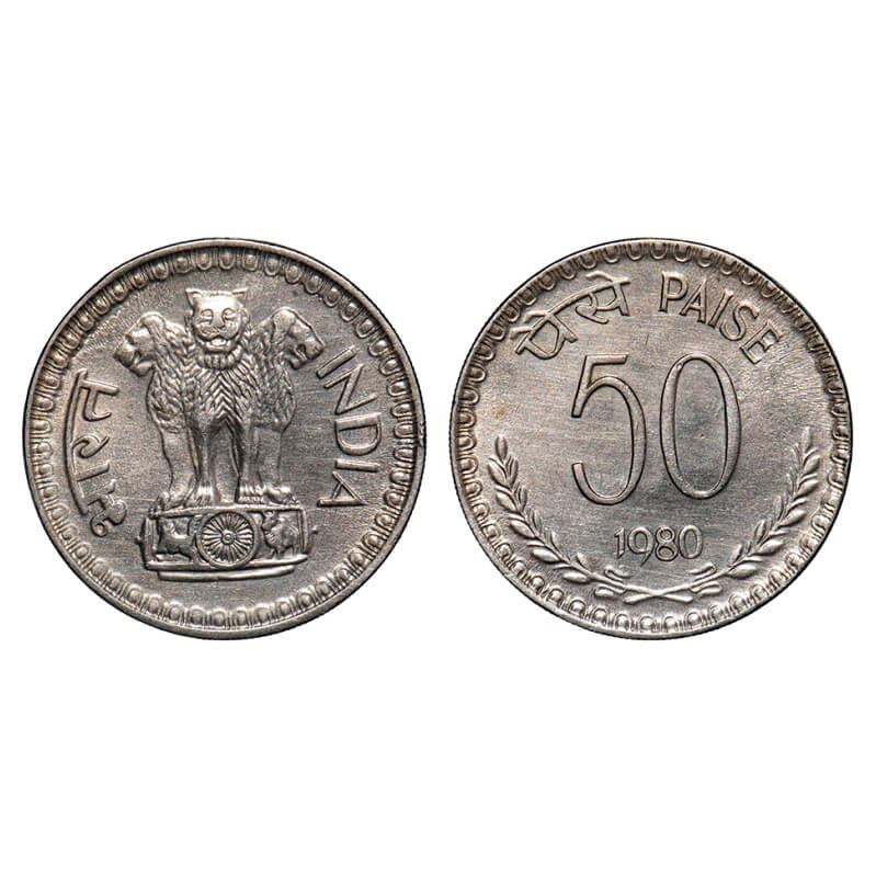 50 Paisa. 1980, Cu-Ni, Calcutta Mint. Uncirculated, Rare.