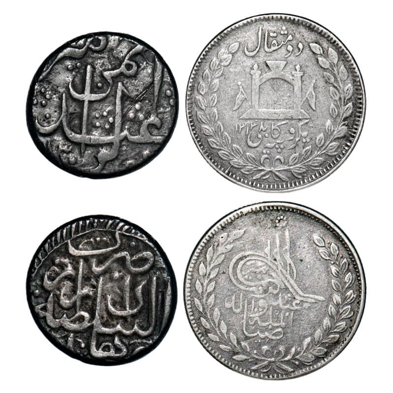 Afghanistan Early And Republic (2 Coins), 9.20g & 9.07g, Silver Rupee, 1) Abdur Rahman (AH 1297-1319/1880-1901 AD) Durranis AH 1307 &, 2) Rupee, 9.07g, Amanulla (AH 1337-1348 / 1919-1929 AD) AH 1314, date below toughra. KM 224 & 867. Very Fine, Scarce.