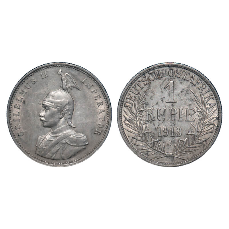 German East Africa, Silver Rupie (0.9170 silver), 11.60g, Wihelm II, 1913 J. KM 10. About Uncirculated details, Scarce.