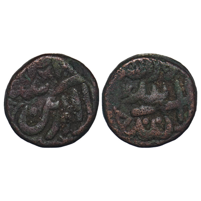Humayun, Copper 1/2 Falus, Fateh Champaner Mint, AH 942, Obv: zarb fateh champaner, rev: fi trik sanah 942, the pursuit of bahaduri the sultan humayun of gujarat exclaming the conquest of champaner, these coins are among the rare copper coins of humayun. About Very Fine, Rare.