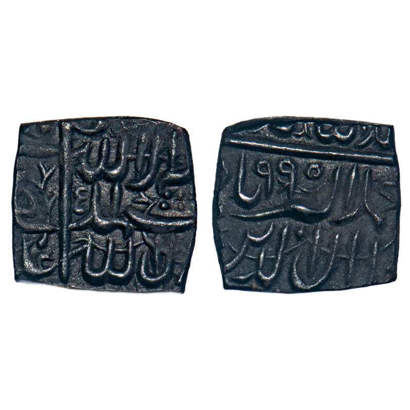 Akbar, Silver Square Rupee, 11.18g, Dar us Sultanat Fatehpur Mint, AH 987. A. Liddle S35. About Very Fine, Scarce.