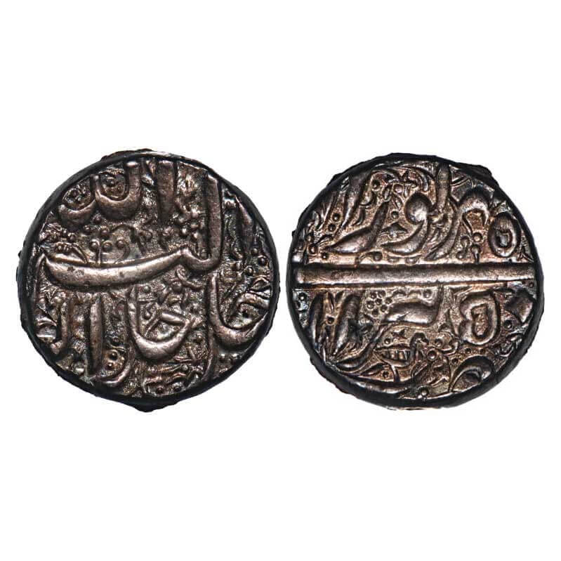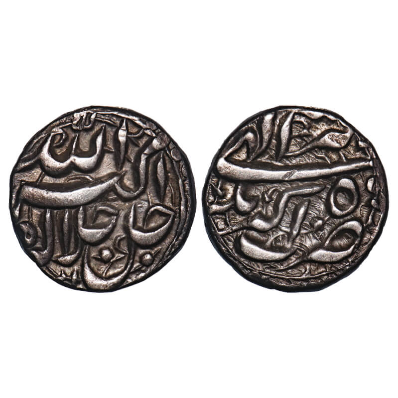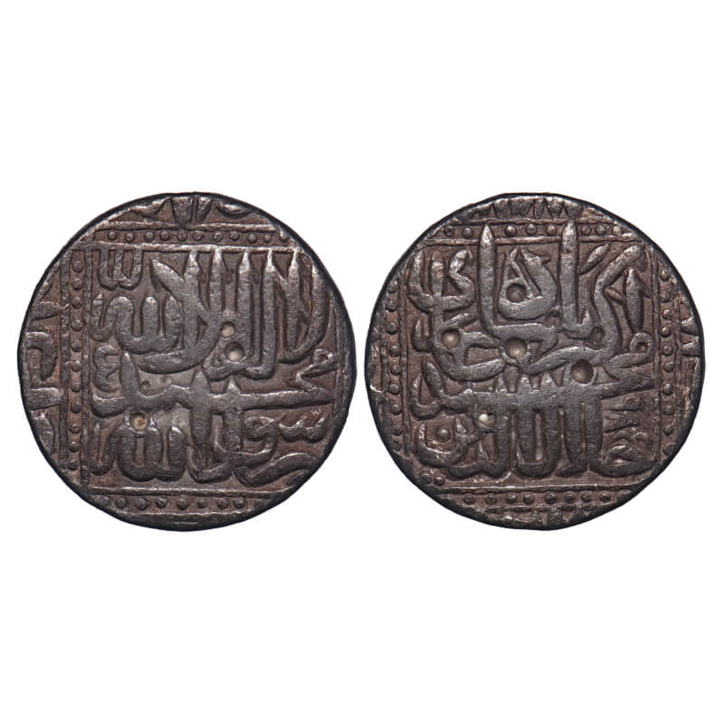 Akbar, Silver Rupee, 11.38g, Anhirwala Patan Mint, Kalima type, AH 984, Kalima and name of emperor is written in dotted double line square on obverse & reverse. KM 80.4. Very Fine+, Rare.