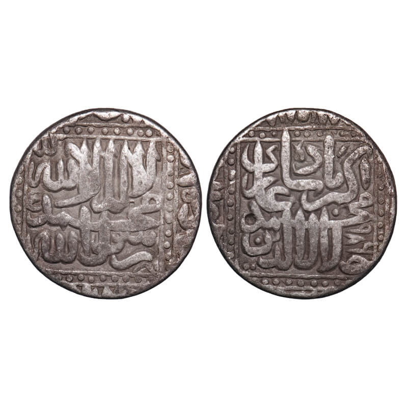 Akbar, Silver Rupee, 11.41g, Dar us Sultanat Agra Mint, AH 983, Kalima type, legend within wavy lined square on Obv & square on rev, with Khald Alla legend, A.Liddle S-11 type. About Extremely Fine, Scarce.