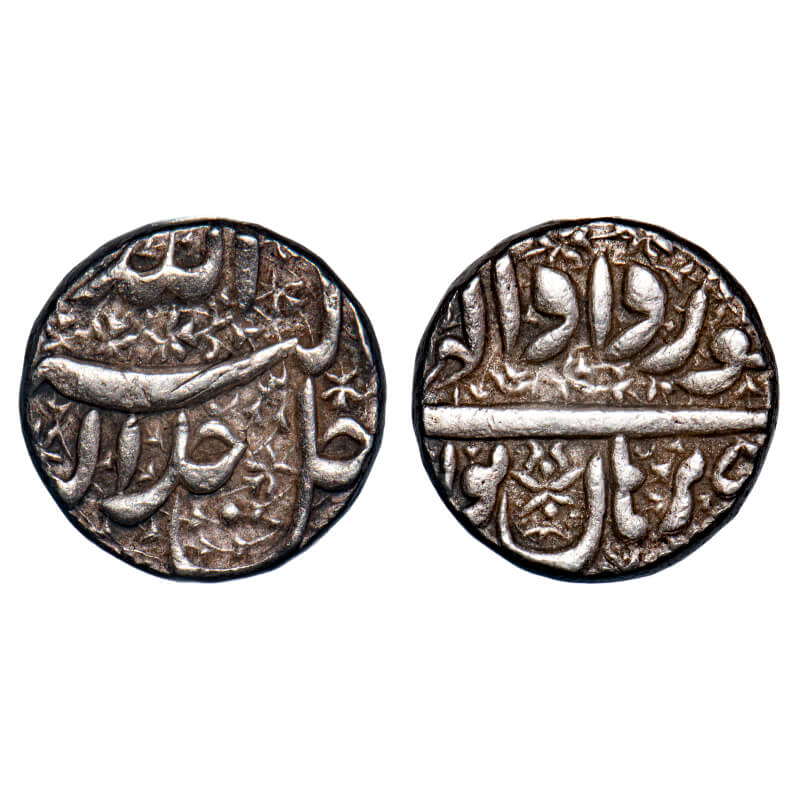 Akbar (AH 963-1014; 1556-1605 AD), Silver Rupee, 9.76g, Shahr-i-Muazzam Ahmadabad Mint, AH 981, Kalima type with epithet Shahr-i-Muazzam that is the city of excellence. A. Liddle S15. About Very Fine, Scarce.