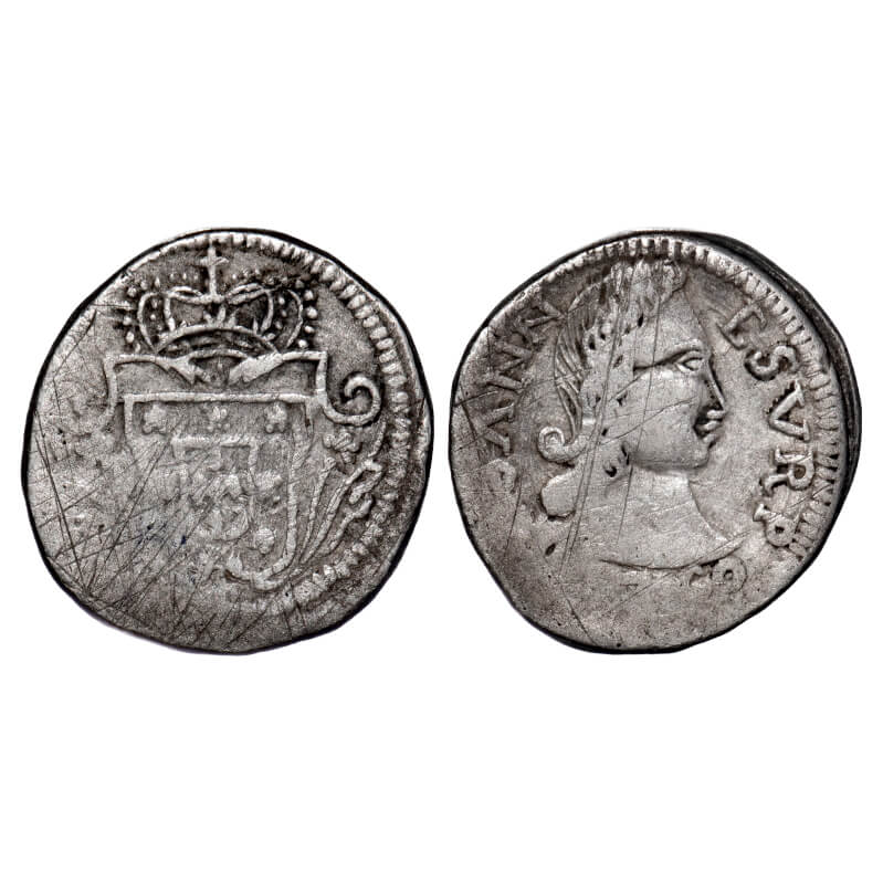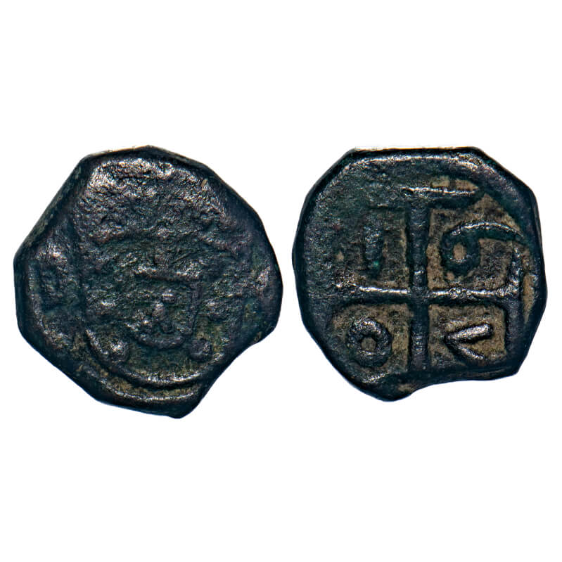 Indo Portuguese, Copper Bazaruco, 3.36g, D.Pedro II (1683-1706 AD), Diu issue, 1700. Obv: Crowned arms, Rev: date in arms of the Cross. A.Gomes (page 558) 01.05 / KM Unlisted. Very Fine, Scarce.
