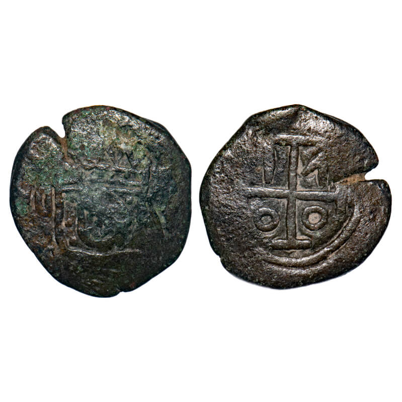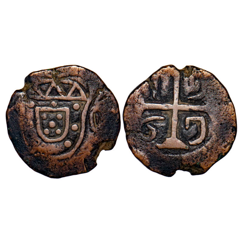 Indo Portuguese, Copper Bazarucos (Could be a Token), 7.45g, D. Filipe III (1621-1640 AD), Diu issue, crown & (PHILIPVS III REX PO)RTVGALAE ANTONIO (TELES DUX) and cross other side. A.Gomes (page. 550) Unlisted type. Fine+, Very Scarce.